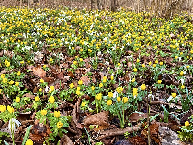 Mit dem Spaziergang durch den Hainpark sind Signale zu sehen, die den Frühling andeuten. Vermehrt sind es die Felder von Winterlinge, von Schneeglöckchen, die diese Signale aussenden.