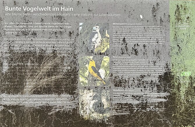 Im Hainpark sind themenbezogene sogenannte "Hain-Pulte" platziert. Die Info-Stelen bedürfen aktuell einer Pflege.