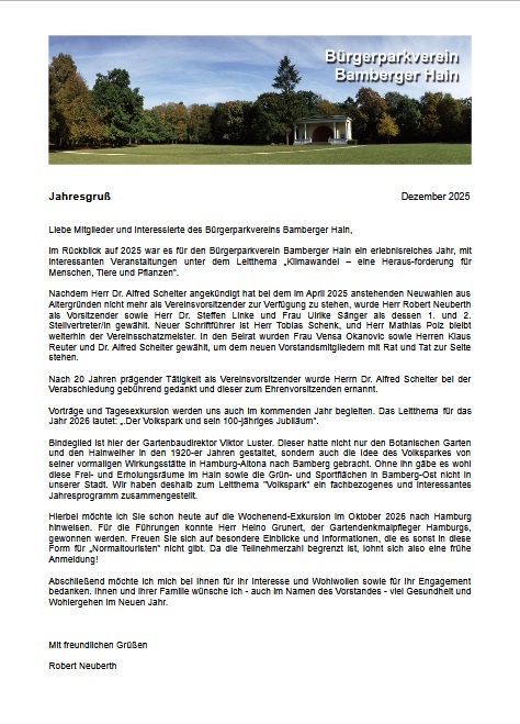 Liebe Mitglieder*innen des Bürgerparkvereins Bamberger Hain e.V., liebe Interessierte,...